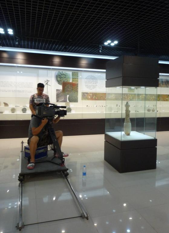 劇組編導張馨尹針對宋金時期的民俗文化、娛樂風俗等方面的問題對藝術設計學院魏躍進教授進行了采訪。魏躍進教授指出,宋代陶模等館藏文物印證并真實的反映了宋金時代的民俗和娛樂風尚,具有很高的歷史、文化、民俗價值。攝制組工作人員隨后選取了宋代陶模、陶瓷和玩具等文物進行了重點拍攝。