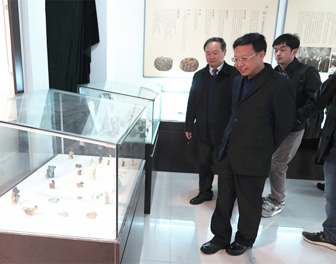 本站訊 3月20日上午,河南省大學(xué)生創(chuàng)新創(chuàng)業(yè)實踐示范基地實地考察專家組來我校大觀博物館參觀考察。副校長萬是明、招生就業(yè)處處長張濤等陪同參觀。