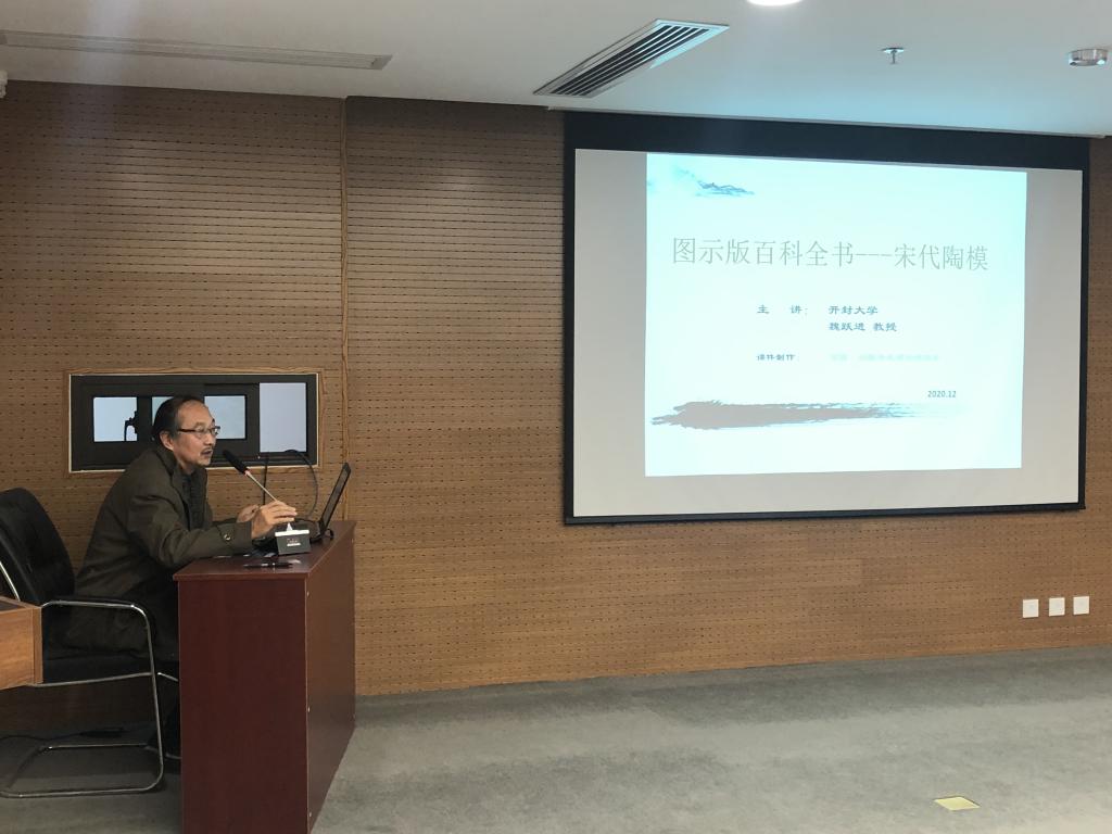 2020年12月魏躍進(jìn)教授受開(kāi)封市美術(shù)館邀請(qǐng),參加由開(kāi)封市美術(shù)館與杰克吉爾少年國(guó)際藝術(shù)教育聯(lián)辦的東京夢(mèng)“畫(huà)”展覽的開(kāi)幕式,并為參觀者開(kāi)展“圖示版百科全書(shū)-----宋代陶模”講座。