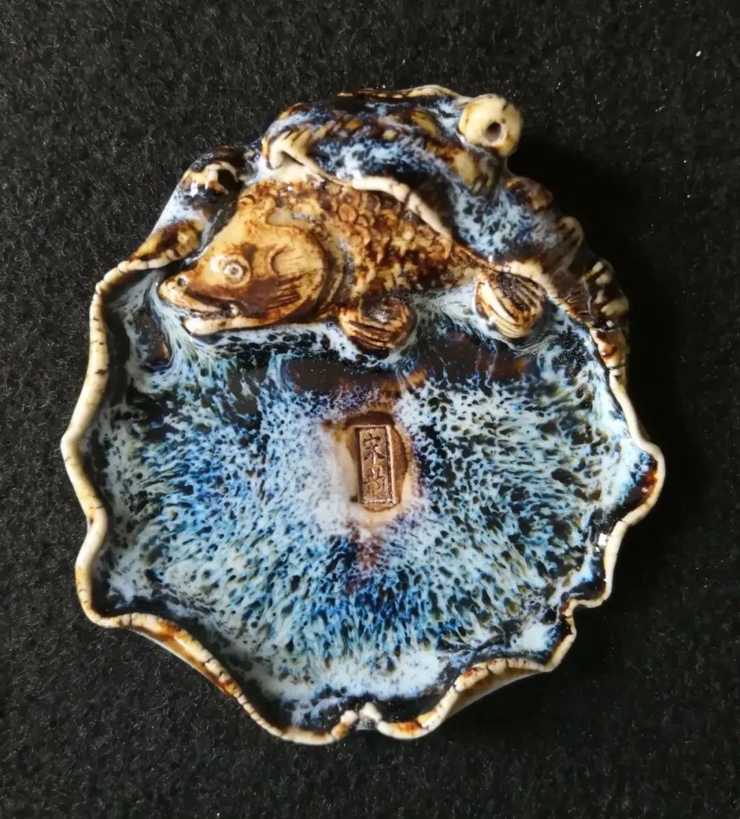 知名宋代陶模收藏家魏躍進教授,追慕宋人美學,以文房雅趣為旨,創制出來一批文房小品,其中就有一批筆舔手作。魏教授這一批作品,樣式多變,大體是以荷葉為基礎造型,其中還雕嵌有童子、魚、荷花等。