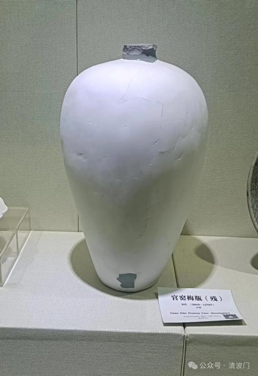 參加本次龍鱗南宋官窯研學(xué),家鄉(xiāng)河南汝窯故里的朋友,分享兩張圖片給大家。是河南開封大學(xué)大觀博物館的展品。一件是官窯梅瓶(殘),未具體說明是南宋官窯還是未被考古發(fā)現(xiàn)確證窯址的北宋官窯?另一件是汝窯茶盞(殘),從器型看,應(yīng)該是茶盞的座托(中空),而非茶盞。