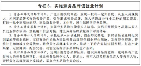 (十一)高度重視城鎮青年就業。 為城鎮青年創造多樣化就業機會。聚焦城鎮青年(主要包括未繼續升學初高中畢業生、城鎮失業青年、轉崗青年職工等,下同),完善就業支持體系。在推動先進制造業、現代服務業和勞動密集型產業發展中,開發更多適合城鎮青年的就業崗位,帶動更多城鎮青年到新產業新業態新商業模式領域就業創業。對接產業優化布局、區域協調發展和重點行業企業人才需求,完善人力資源需求發布、要素配置、協同發展機制,支持城鎮青年到人才緊缺領域就業。 增強城鎮青年職業發展能力。發揮就業創業服務機構、產業企業園區、青年之家、青年活動中心等各類平臺作用,支持城鎮青年參加職業指導、職業體驗、創業實踐、志愿服務等活動。探索組織青年職業訓練營、就業訓練工場。打造適合城鎮青年特點的就業服務模式,暢通信息服務渠道,提高擇業精準度。 強化城鎮青年就業幫扶。實施青年就業啟航計劃,對城鎮長期失業青年開展實踐引導、分類指導和跟蹤幫扶,促進其進入市場就業創業。將勞動精神、奮斗精神融入指導和實踐,引導城鎮青年自強自立。為城鎮困難失業青年提供就業援助。 (十二)加強退役軍人就業保障。 改革完善退役軍人安置制度。科學制定安置計劃,改進崗位安置辦法,推進落實安置政策,壓實屬地安置責任,規范接收安置程序,提高安置質量。優化安置方式,探索市場化安置改革,實現多渠道、多元化安置。推廣“直通車”式安置,健全“陽光安置”工作機制。鼓勵到艱苦邊遠地區和城鄉基層安置。加強各種安置方式統籌協調,強化政策制度銜接。 支持退役軍人自主就業。將退役軍人按規定納入現有就業服務、教育培訓等政策覆蓋范圍。探索推開“先入?;貭t、再就業創業”的模式,鼓勵符合條件的退役軍人報考高職學校,落實招收、培養、管理等方面的扶持政策。適時調整退役軍人就業崗位目錄。協調各方資源,加強行業企業合作,拓展就業供給領域,挖掘更多適合退役軍人的就業崗位,促進退役軍人到民營企業就業。實施“兵支書”協同培養工程,推動退役軍人在鄉村就業。設立退役軍人就業實名臺賬,強化退役軍人服務中心(站)就業服務功能,及時提供針對性服務。 (十三)推進農村勞動力轉移就業。 穩定和擴大農村勞動力外出就業規模。廣泛開展區域間勞務協作,健全勞務輸入集中區域與勞務輸出省份對接協調機制,加強勞動力跨區域精準對接,發展勞務組織和經紀人,有序組織輸出地農村勞動力外出務工。培育一批有地域特色、行業特征、技能特點,帶動農村勞動力就業效果好的勞務品牌。實施農民工素質提升工程,推進新生代農民工職業技能提升計劃。創建一批農村勞動力轉移就業示范縣。