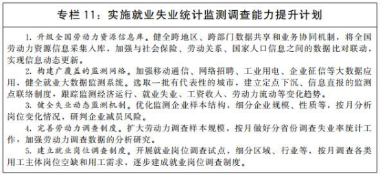 增強風險預警預判能力。健全就業形勢科學研判機制,建立“政府+高校+企業”的就業聯合實驗室,組建專業分析團隊,開展就業重大問題研究,提升形勢感知、分析研判和科學決策水平。完善企業規模裁員減員及突發事件報告制度,加強風險評估,適時發布失業預警信息。推動縣級以上政府進一步完善失業風險預警制度。 (二十三)全面強化風險應對處置。 健全風險應對處置機制。制定分級政策儲備和風險應對預案制度。加強規模性失業風險應急處置,有條件的地方可設立就業風險儲備金。允許困難企業在與職工協商一致基礎上,采取依法調整工作時間安排、薪酬等方式,穩定工作崗位。指導企業依法依規裁員。 完善失業保障體系。穩步推進失業保險擴圍,進一步暢通申領渠道,提高政策受益率。用好用活失業保險促進企業穩崗、支持參保職工技能提升等政策,提高失業保險基金使用效率,充分發揮保生活基本功能作用,有效發揮防失業、促就業功能作用。暢通失業人員求助渠道,建立失業人員常態化幫扶機制,實現失業登記、職業指導、職業介紹、職業培訓、生活保障聯動。 積極應對人工智能等智能化技術應用對就業的影響。建立人工智能等智能化技術應用對就業影響的跟蹤研判和協同應對機制,避免其就業替代效應短期內集中釋放。構建不同行業、不同業態間的轉崗機制,加快勞動者知識和技能更新速度,廣泛開展人工智能等智能化技術應用適應性、儲備性培訓,提升人工智能等智能化技術通用技能,充分放大其就業創造效應。 十、實施更加有力的保障措施,確保規劃任務落實落地 (二十四)加強黨的領導。 深入學習貫徹習近平新時代中國特色社會主義思想,增強“四個意識”、堅定“四個自信”、做到“兩個維護”,把黨的領導貫徹到促進就業工作的各領域、各方面、各環節,確保黨中央、國務院關于促進就業的各項決策部署落到實處。規劃實施中的重大事項和重大調整報黨中央、國務院審定。 (二十五)強化資金保障。 對規劃確定的重點任務,按照中央與地方財政事權和支出責任劃分原則,落實各級政府的投入責任。按規定統籌各類就業資金,提高使用效率。健全就業領域投融資機制,進一步拓寬資金渠道,引導帶動金融資本和社會資本在返鄉入鄉創業、技能培訓、職業技術教育、就業服務等方面發揮更大作用。 (二十六)提升政策效果。 實施就業政策快辦幫辦行動,及時公布政策清單和網上辦理渠道,依托大數據比對主動識別政策對象,精準推送信息,擴大政策知曉度。完善政策宣傳機制,開展政策推介解讀,努力提高政策落實率。加強對就業政策實施效果的跟蹤調查評估。 (二十七)鼓勵探索創新。 對規劃確定的重大舉措和創新政策,支持有條件的地方先行先試。推動就業領域相關法律法規修訂。鼓勵各地各有關部門和單位圍繞規劃重點任務,創新思路和形式,積極探索多種務實有效的實施方式和有用、管用的落實措施,著力形成一批可復制可推廣的經驗做法和制度性成果。 (二十八)認真組織實施。 充分發揮國務院就業工作領導小組作用,推動各有關部門和單位履職盡責。創新規劃組織實施方式,針對重大任務,專題專項推進。加強對規劃實施情況及效果的評估,推進以評估為依據的政策改進,及時總結推廣政策實施中的好經驗好做法。強化監督檢查,層層壓實責任,抓好任務落實。 |