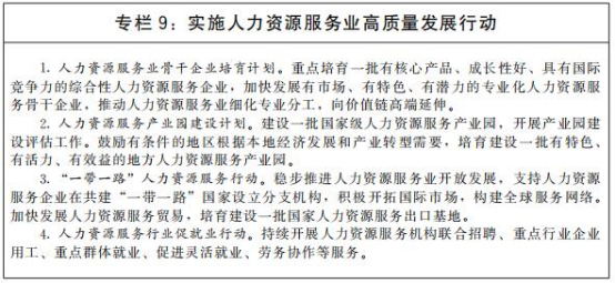 提高人力資源市場規范化水平。深化人力資源市場“放管服”改革,規范實施人力資源服務許可,持續優化人力資源市場環境。加強人力資源市場管理信息化、人力資源服務標準化和人力資源市場信用體系建設,完善人力資源服務機構信用評價標準和制度。組織開展誠信服務活動,選樹一批誠信人力資源服務典型。 (十八)健全全方位公共就業服務體系。 完善公共就業服務制度。健全戶籍地、常住地、參保地、就業地公共就業服務供給機制,推進就業創業政策咨詢、就業失業登記、職業介紹等服務覆蓋全體城鄉勞動者。支持各類市場主體在注冊地、經營地、用工地免費享受勞動用工咨詢、招聘信息發布等服務。推動公共就業服務向農村延伸,實現城鄉公共就業服務便利共享。持續改善革命老區、邊境地區等公共就業服務水平和質量,縮小區域間差距。 加強公共就業服務機構設置。完善街道(鄉鎮)、社區(村)服務平臺,構建覆蓋城鄉的公共就業服務網絡。合理配置公共就業服務機構人員,加強職業指導、職業信息分析、創業指導等專業化、職業化隊伍建設。組織動員各類人民團體、群眾團體參與提供公共就業服務,支持社會組織提供公益性就業服務。 增強公共就業服務能力。健全公共就業服務標準體系,完善設施設備配置、人員配置等指導性標準,統一公共就業服務視覺識別系統,統一核心業務流程和規范。加快公共就業服務智慧化升級,推動公共就業服務向移動終端、自助平臺延伸,打造集政策解讀、業務辦理等于一體的人工智能服務模式,逐步實現服務事項“一網通辦”。推進流動人員人事檔案信息化建設。建立綜合評價指標體系,開展公共就業服務需求分析、社會滿意度調查和第三方評估。創建一批公共就業創業服務示范城市,開展充分就業社區建設。