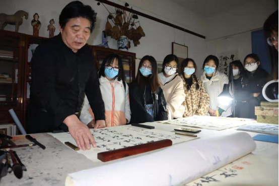 為進一步豐富我校在校大學生創客的文化生活,11月10日,我校創客在創新創業學院院長、國學研究會指導教師閆俊的帶領下,走進創新創業學院李本松藝術創新工作室,開展書法藝術創新交流活動。