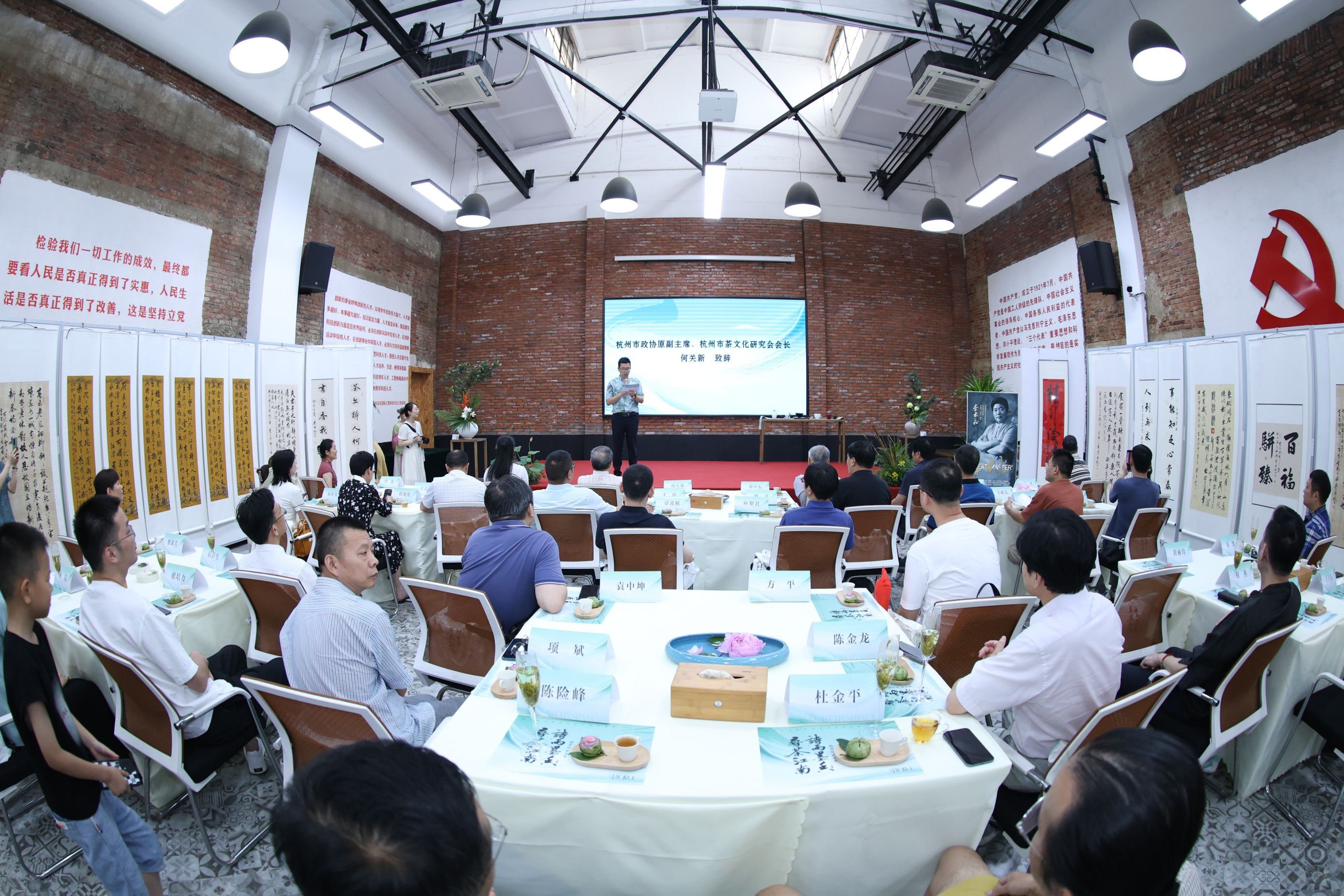 7月13日,“尋茶江南詩雨墨香”——隱上茶書院李本松書法作品展清野花展開幕式在杭州經(jīng)緯天地創(chuàng)意產(chǎn)業(yè)園·經(jīng)緯會堂舉行。此次展覽由開封大學(xué)、杭州市茶文化研究會、浙江樹人大學(xué)國際茶文化學(xué)院、浙江理工大學(xué)杭州校友會指導(dǎo),杭州經(jīng)緯天地創(chuàng)意產(chǎn)業(yè)園、杭州尋茶隱上茶葉有限公司共同主辦,民建省直華立支部、清野花藝聯(lián)合協(xié)辦。