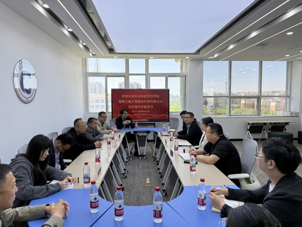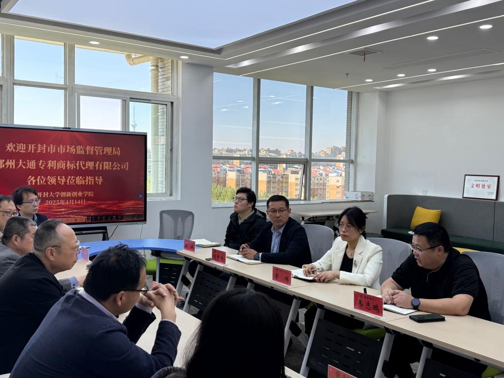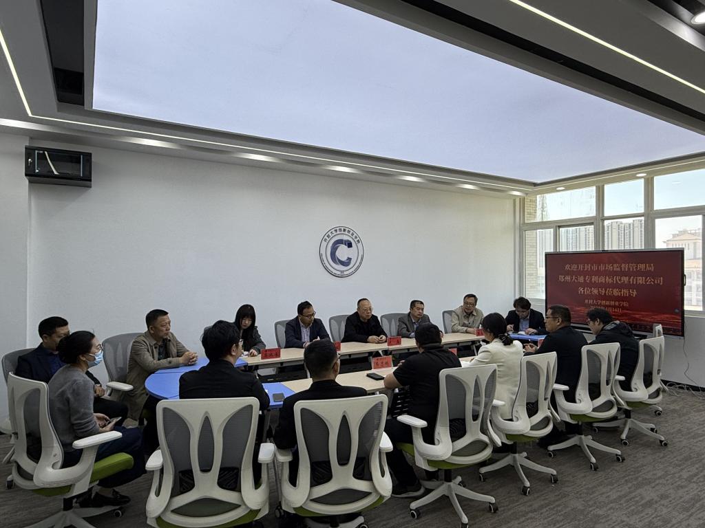 4月14日,開(kāi)封市市場(chǎng)監(jiān)督管理局知識(shí)產(chǎn)權(quán)保護(hù)科科長(zhǎng)盧磊、知識(shí)產(chǎn)權(quán)促進(jìn)科科長(zhǎng)段軍權(quán)、知識(shí)產(chǎn)權(quán)維權(quán)保護(hù)中心主任張勇以及鄭州大通專利商標(biāo)代理有限公司副總經(jīng)理張立強(qiáng)等領(lǐng)導(dǎo)一行十余人到我院參觀、指導(dǎo)、調(diào)研,院長(zhǎng)李輝出席本次會(huì)議并主持。