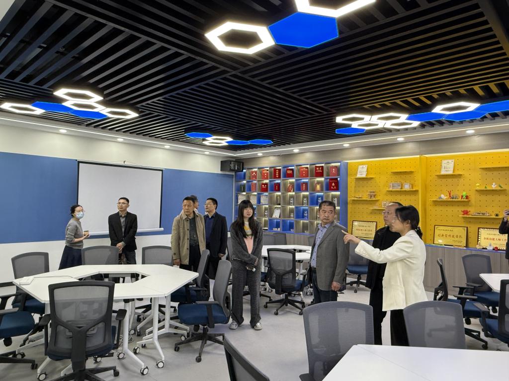 各位領(lǐng)導(dǎo)首先在李輝院長(zhǎng)的介紹下參觀了創(chuàng)新創(chuàng)業(yè)學(xué)院,盧科長(zhǎng)等一行領(lǐng)導(dǎo)對(duì)新建成的創(chuàng)新創(chuàng)業(yè)學(xué)院給于了高度評(píng)價(jià),也對(duì)學(xué)校、京東集團(tuán)對(duì)高校雙創(chuàng)工作的重視給予了高度贊揚(yáng)。隨后雙方在學(xué)院會(huì)議室召開(kāi)了高校知識(shí)產(chǎn)權(quán)專題座談會(huì)。座談會(huì)上,雙方圍繞高校知識(shí)產(chǎn)權(quán)服務(wù)形式、服務(wù)內(nèi)容以及大學(xué)生創(chuàng)業(yè)園入職企業(yè)孵化商品商標(biāo)注冊(cè)等內(nèi)容,開(kāi)展了充分的談?wù)摚?duì)高校知識(shí)產(chǎn)權(quán)申報(bào)、成果轉(zhuǎn)化等提出了建設(shè)性意見(jiàn)和建議。雙方商定以此次活動(dòng)為契機(jī),建立長(zhǎng)效合作機(jī)制,通過(guò)“政校聯(lián)動(dòng)、資源共享”模式,推動(dòng)知識(shí)產(chǎn)權(quán)與產(chǎn)業(yè)鏈需求精準(zhǔn)銜接,助力校內(nèi)創(chuàng)新生態(tài)建設(shè)。