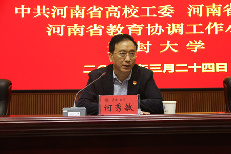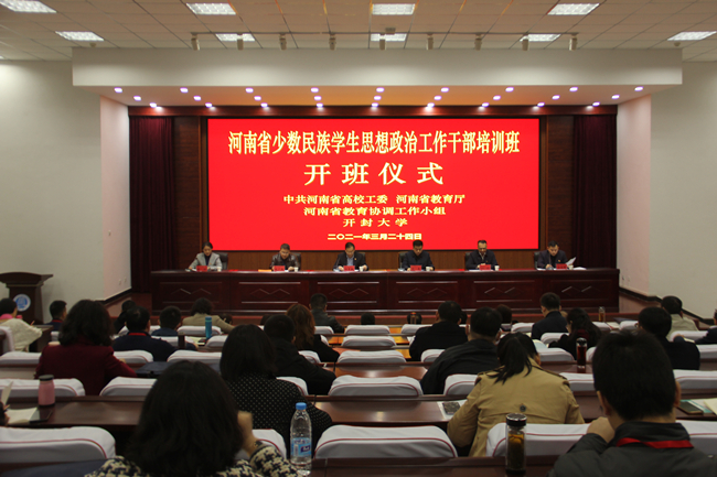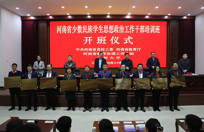 本站訊 為深入貫徹第三次中央新疆工作座談會精神,加強新時代的民族團結進步教育,鑄牢中華民族共同體意識,3月24日至26日,省委高校工委、省教育廳舉辦河南省少數民族學生思想政治工作干部培訓班在我校舉行。省委高校工委專職委員何秀敏、開封市人民政府副市長劉震、我校黨委書記陳燦出席開班儀式。開封市委常委、統戰部部長邵華,常務副部長呂瑞林出席培訓班專題報告會。省委統戰部、省教育廳、省民宗委、鄭州市教育局、開封市教育局、南陽市教育局相關負責人,部分高校黨委相關部門負責人、教師、學生專職輔導員,共135人參加培訓。