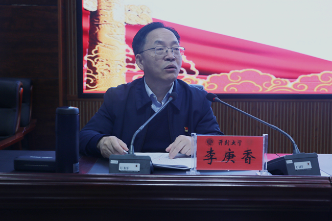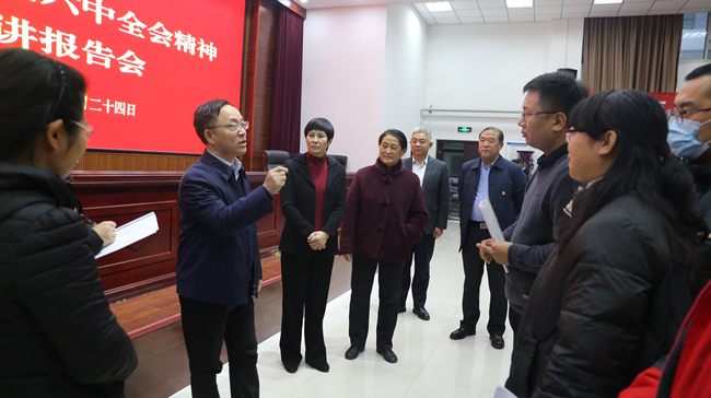 本站訊 為深入學習貫徹黨的十九屆六中全會精神,引導師生全面準確把握全會精神的核心要義和主旨精髓,真正做到深學細悟、入腦入心,根據開封市委宣傳部安排,12月24日下午,省委黨的十九屆六中全會精神宣講團專家,省社科聯黨組書記、主席,我校客座教授李庚香到校作黨的十九屆六中全會精神專題宣講報告。本次宣講也是我校黨委理論學習中心組的一次集中擴大學習。