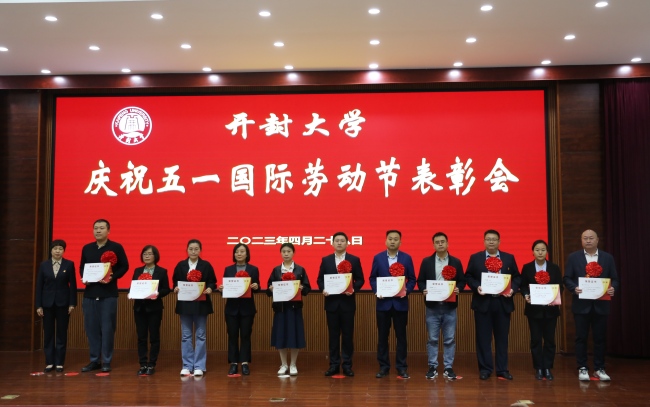 本站訊 汗水澆灌夢想,勞動創造價值。4月28日上午,我校在行政樓第一會議廳召開慶祝“五一”國際勞動節表彰會。校黨委書記陳燦,校長宋曉煒,校黨委副書記儲建新,校黨委委員、工會主席成芳出席會議并為獲獎集體和個人進行了頒獎。我校在2022年河南省教育系統教學技能競賽中的獲獎者、學校獲得工會先進集體和先進個人的代表、學生代表參加了活動。會議由校工會副主席張紅艷主持。