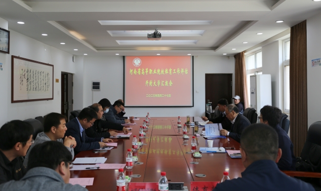 本站訊 4月27日,由鄭州西亞斯學院體育學院院長何祖新教授、洛陽理工學院體育教學部主任史鮮玲教授、信陽職業技術學院體育學院院長傅森教授組成的河南省高等職業院校體育工作評估專家組蒞臨我校,對學校體育工作進行評估。校黨委副書記、校體育運動委員會主任儲建新出席會議,學生工作部、團委、教務處、財務處、國有資產管理處、校園建設與管理處、體育部的負責人參加會議。