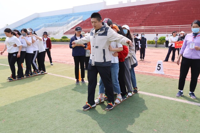 本站訊 為豐富教職工的精神文化生活,強化運動健身意識,4月22日下午,由校工會舉辦的2024年教職工春季運動會團體項目在體育場開賽?;顒釉O置了“五人團體競速”“一圈到底”兩個項目,來自20個多個分工會的300余名教職工參加了比賽。