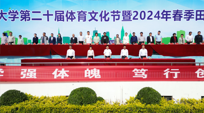 本站訊 碧空萬里,百花齊放。4月25日,我校第二十屆體育文化節暨2024年春季田徑運動會隆重開幕。校長王德如出席開幕式并致開幕詞,校領導萬是明、成芳、曾小平、石超亭參加開幕式。開幕式由副校長萬是明主持。