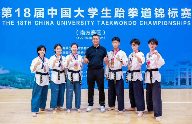本站訊 5月21日至24日,由中國學生體育聯合會主辦、中國學生體育聯合會大學跆拳道分會執行的“第18屆中國大學生跆拳道錦標賽(南方賽區)”在長沙市明德中學體育館隆重舉行。來自全國200多所高校的近2000名跆拳道運動員參加本次比賽。我校共斬獲2金2銀1銅,6名參賽隊員全部獲得全國總決賽資格。