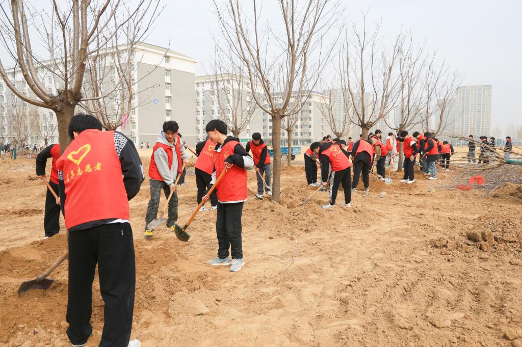 植樹現(xiàn)場,大家分工協(xié)作,手持鐵鍬、挖坑填土、提桶澆灌,現(xiàn)場秩序井然。在師生們的共同努力下,近百棵櫻花樹苗迎風(fēng)挺立,宛如綠色的音符在春日里譜寫著希望的樂章。