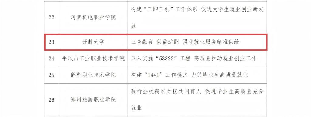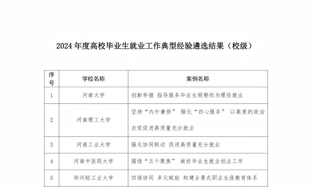本站訊 近日,河南省教育廳公示了“2024年度高校畢業生就業工作典型案例遴選結果”名單,經逐級推薦評審,開封大學申報的“校級、指導教師、畢業生”典型案例同時入選。