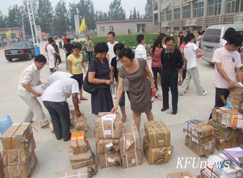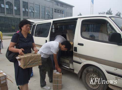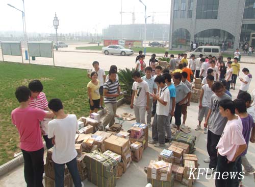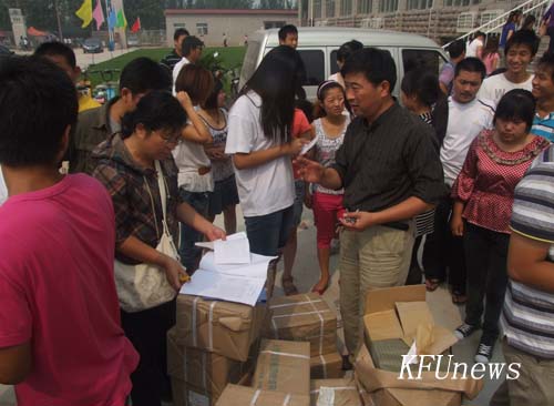 本站訊 8月30日上午,新校區教學樓門前,一堆堆教材擺放整齊,周圍有很多學生,有的在和老師一起清點數量,有的正準備搬書。記者走到前,發現被學生圍著的老師是教務處處長吳璽玫和教務處的其他同志。吳處長告訴記者:“以前都是院部派人到教材科領取各院的學生教材,今年財經學院、人文學院兩院剛剛搬到新校區,為了減少兩院的工作壓力,教務處全體出動,用學校派的專車把教材運到這里,直接分發到院里,確保同學們提前拿到新教材,保證新校區按時開課。”