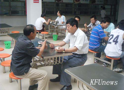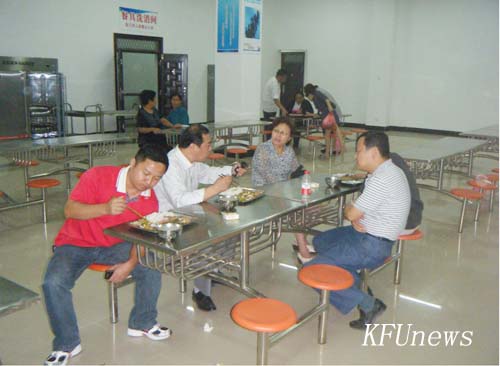 校領(lǐng)導(dǎo)分別察看了食堂售飯窗口、就餐大廳和食堂操作間,仔細(xì)詢問同學(xué)們的就餐及生活情況,還就食堂的飯菜價格、餐具衛(wèi)生等方面,向后勤公司負(fù)責(zé)同志提出了具體意見。并就食堂環(huán)境的局部改造對后勤公司的同志給予了良好的建議,要求新校區(qū)綜管辦要建立起長期有效的溝通機(jī)制,及時發(fā)現(xiàn)問題,及時商討解決學(xué)生反映的問題。并要求新校區(qū)綜管辦的同志要繼續(xù)努力工作,積極為同學(xué)們營造優(yōu)良的學(xué)習(xí)生活環(huán)境。