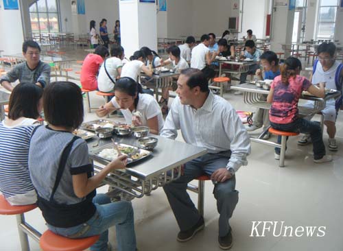 本站訊 我校財經(jīng)學(xué)院、人文學(xué)院兩院學(xué)生正式入住新校區(qū),新校區(qū)各項(xiàng)設(shè)施也開始正式運(yùn)轉(zhuǎn)。學(xué)校領(lǐng)導(dǎo)非常重視剛搬入新校區(qū)學(xué)生的飲食,8月30日一大早,黨委書記莫華林到新校區(qū)學(xué)生食堂視察工作,并與師生一起共進(jìn)早餐,了解學(xué)生生活情況。8月28日中午,校領(lǐng)導(dǎo)儲建新在新校區(qū)學(xué)生食堂和同學(xué)們一起吃我校喬遷新址第一頓午餐,8月29日,校領(lǐng)導(dǎo)儲建新、范金梅到新校區(qū)學(xué)生食堂察看,并和師生一起吃晚餐,實(shí)地了解學(xué)生吃住情況。