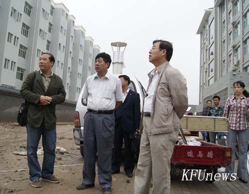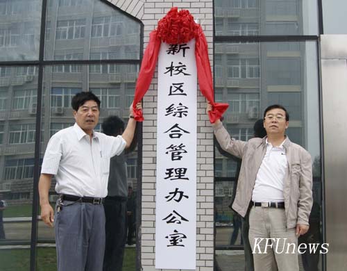 8:45分,校領導一行剛下汽車,就冒著霏霏細雨,對學生宿舍、食堂、燃氣安裝、道路交通、供水用電和其它文化體育設施建設等情況進行實地考察,發現問題,責令相關人員限期整改。對在北校區建設付出艱辛勞動,特別是人文、財經兩個學院的教職員工克服困難、服從大局、不辭辛苦、日夜搬遷整理的工作干勁和吃苦精神表示慰問。隨后,莫書記、拜校長在鞭炮聲中為財經、人文兩院揭下匾牌,祝賀喬遷。