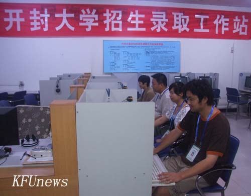 本站訊 7月20日上午,我校藝術(shù)類專科批次開始錄取,本批次計劃在河南省內(nèi)錄取3個專業(yè)342人,標(biāo)志著我校2010年普通高招錄取工作正式開始。校黨委書記莫華林,校長拜五四先后在校紀(jì)委副書記趙海勝和招生工作辦公室負(fù)責(zé)人曹玉芹、孫浦辰的陪同下到學(xué)校招生錄取現(xiàn)場視察工作。莫書記和拜校長分別聽取了我校高招錄取工作情況匯報,并對切實做好今年學(xué)校的錄取工作提出明確要求。
