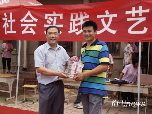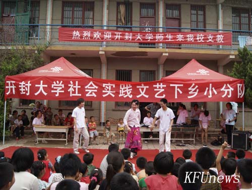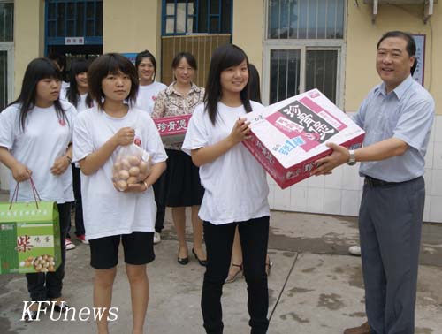 本站訊 7月8日上午,校黨委副書記、副校長儲建新帶領(lǐng)校黨委宣傳部、學(xué)工部、團委、財政經(jīng)濟學(xué)院、工藝美術(shù)學(xué)院等部門負責(zé)人到魏都路小學(xué)和開封縣杜良鄉(xiāng)黃莊小學(xué)慰問我校參加社會實踐的學(xué)生,給他們帶去了雞蛋、方便面等慰問品,并勉勵他們要克服困難、積極實踐、服務(wù)群眾。在魏都路小學(xué)慰問時,儲書記代表學(xué)校為“開封大學(xué)社會實踐基地”揭牌。