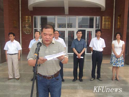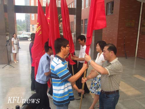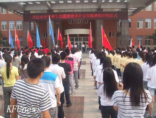 本站訊 6月26日上午,共青團開封市委組織的2010年開封市大中學生志愿者暑期社會實踐活動啟動儀式在我校明德廣場舉行。我校校長拜五四,黨委副書記、副校長儲建新出席了啟動儀式,儲書記代表學校在啟動儀式上致詞。開封大學、黃河水院等全市近10所大中專院校參加啟動儀式,啟動儀式結(jié)束后,參與活動的志愿者小分隊立即行動起來,冒著酷暑奔赴各自實踐基地,拉開了我市大中學生志愿者暑期社會實踐活動的序幕。我校團委組織的13個青年志愿者小分隊參加本次暑期社會實踐活動。