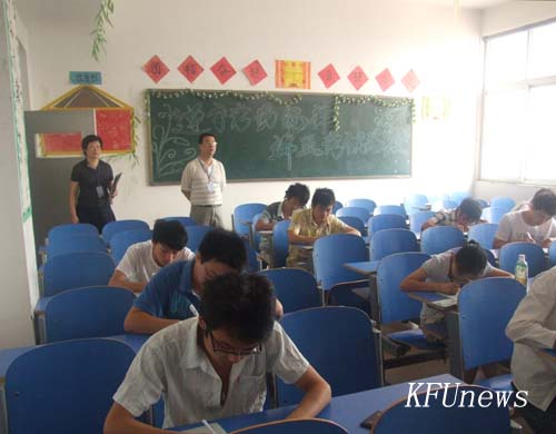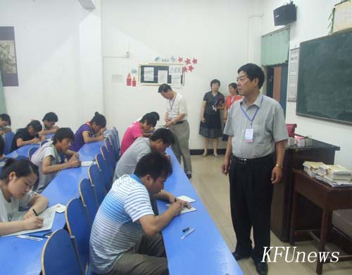 本站訊 本學期期末考試于6月21日開始。當日上午7:50分,校領導莫華林、拜五四、趙輝在相關處室負責人的陪同下,巡視了各教學樓考場。