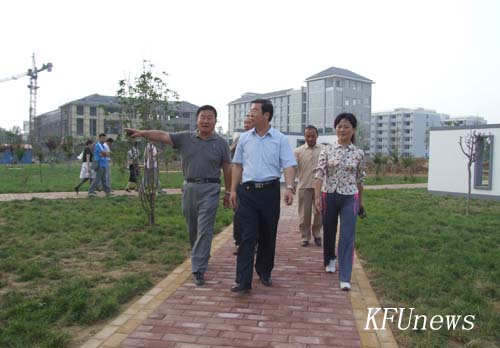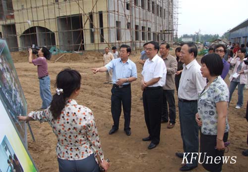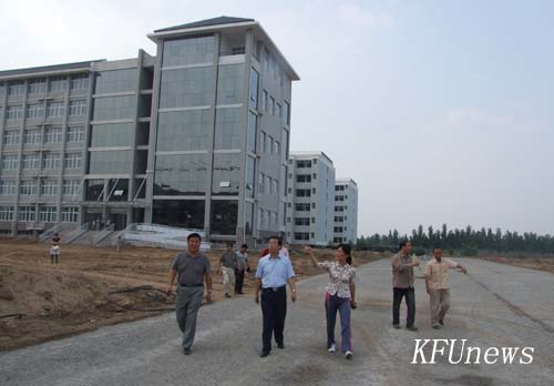 本站訊 6月10日下午,河南省副省長(zhǎng)徐濟(jì)超、省教育廳副廳長(zhǎng)肖新生、開(kāi)封市政府正市長(zhǎng)級(jí)干部朱麗萍、開(kāi)封市教育局局長(zhǎng)焦會(huì)學(xué)等省市領(lǐng)導(dǎo)蒞臨我校,視察北校區(qū)建設(shè)工作,我校校領(lǐng)導(dǎo)拜五四、儲(chǔ)建新、萬(wàn)是明、趙輝、何世玲、王祥云,以及相關(guān)部門(mén)負(fù)責(zé)人陪同。校長(zhǎng)拜五四向來(lái)校視察的省、市領(lǐng)導(dǎo)匯報(bào)了我校的基本情況和北校區(qū)建設(shè)情況。省、市領(lǐng)導(dǎo)聽(tīng)取匯報(bào)后,對(duì)我校的辦學(xué)理念、學(xué)校定位、北校區(qū)建設(shè)等方面給予了充分肯定和高度評(píng)價(jià)。省、市領(lǐng)導(dǎo)視察結(jié)束后,我校校領(lǐng)導(dǎo)在相關(guān)部門(mén)負(fù)責(zé)人的陪同下進(jìn)一步詳細(xì)察看了北校區(qū)建設(shè)情況。