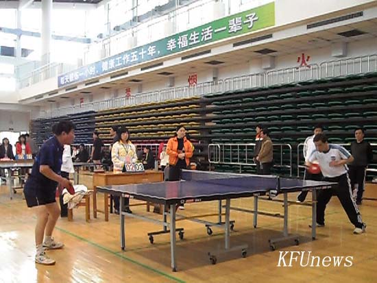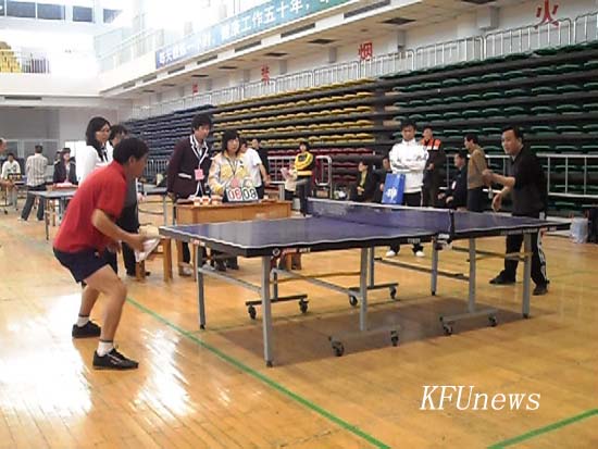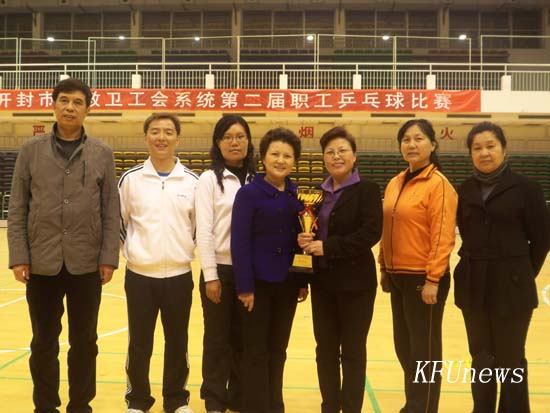 本站訊 4月24-25日,開封市文教衛(wèi)工會(huì)系統(tǒng)第二屆職工乒乓球比賽在開封大學(xué)體育館舉行,全市共有56個(gè)代表隊(duì)參賽,我校組建的代表隊(duì)榮獲第七名。
