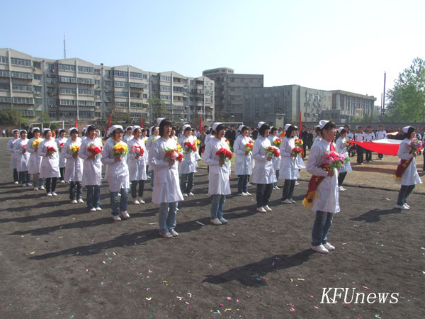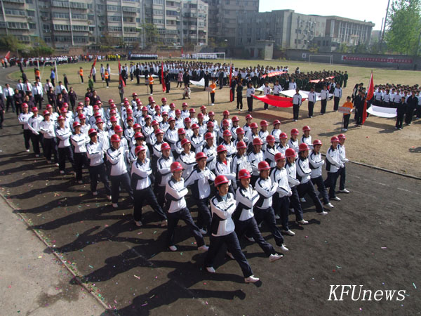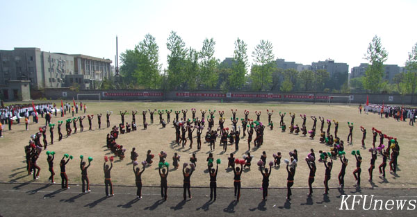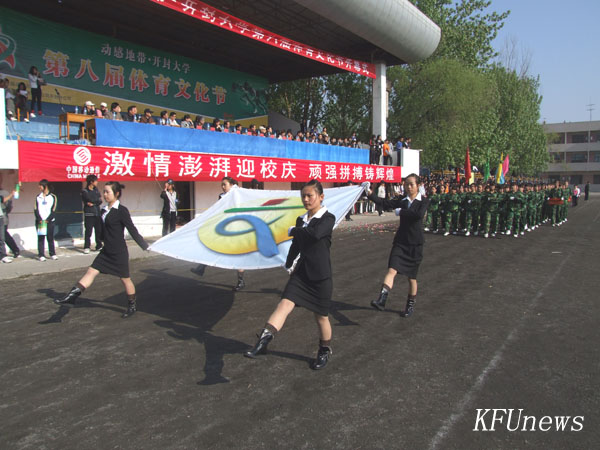 開幕式上,13個院部進行了精彩的入場隊列表演,同時還進行了大型健美操表演。那整齊劃一的隊列,激情飛揚的場面體現(xiàn)了開大人健康、奮進、快樂、向上的精神風貌。