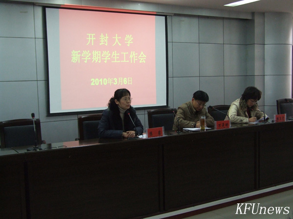 會上,學生工作部部長陳巖以及團委書記樊玉霞就新學期學生工作的總體思路、工作重點、新學期工作計劃和開學初的注意事項等方面作了具體的安排和部署。陳巖指出,本學期的學生工作要緊緊圍繞我校省級示范性建設、新校區建設、黨建評估、三十周年校慶等中心工作來開展,深化兩級管理體制,全面落實以專業素質教育為核心的素質教育。樊玉霞則表示要開好第五屆團代會和第八屆學代會,加強團組織、學生會、學生社團的建設;多組織開展豐富多彩、健康向上的校園文化活動,為我校三十周年校慶獻禮。