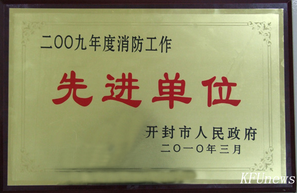 本站訊 3月4日,開封市人民政府在市政府四樓會議室召開《開封市2010年度消防工作會議》,會上并通報表彰了2009年度消防工作先進集體。我校榮獲“2009年度消防工作先進單位”。