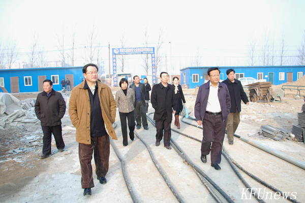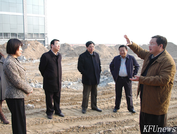 本站訊 2010年2月23日上午,市委書記劉長春、市長周以忠、市長級干部朱麗萍等領導到我校北校區視察建設工作。他們在我校校領導莫華林、拜五四、儲建新、范金梅、何世玲等的陪同下,參觀視察了北校區的建筑工地,并對我校北校區發展建設的情況進行詢問。