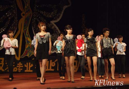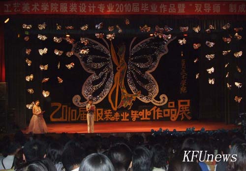 本站訊 工藝美術(shù)學(xué)院服裝設(shè)計(jì)專業(yè)2010屆畢業(yè)作品暨“雙導(dǎo)師” 制成果展示會(huì),于6月8日晚在金松大禮堂舉行。開封大學(xué)副校長(zhǎng)趙輝,教務(wù)處長(zhǎng)吳璽玫、實(shí)訓(xùn)處處長(zhǎng)肖興達(dá)及開封服裝商會(huì)會(huì)長(zhǎng)楊玉慶、新春制衣公司祁文強(qiáng)等服裝企業(yè)負(fù)責(zé)人、河南大學(xué)藝術(shù)學(xué)院、黃河水利職業(yè)技術(shù)學(xué)院、開封技師學(xué)院等兄弟院校的領(lǐng)導(dǎo)出席了展示會(huì)。