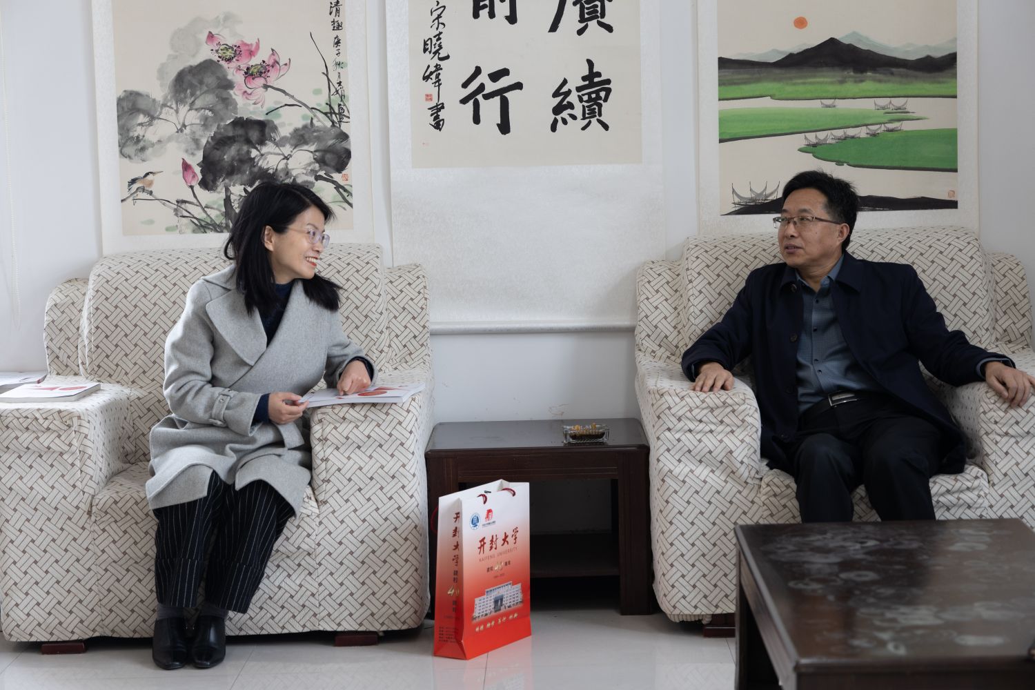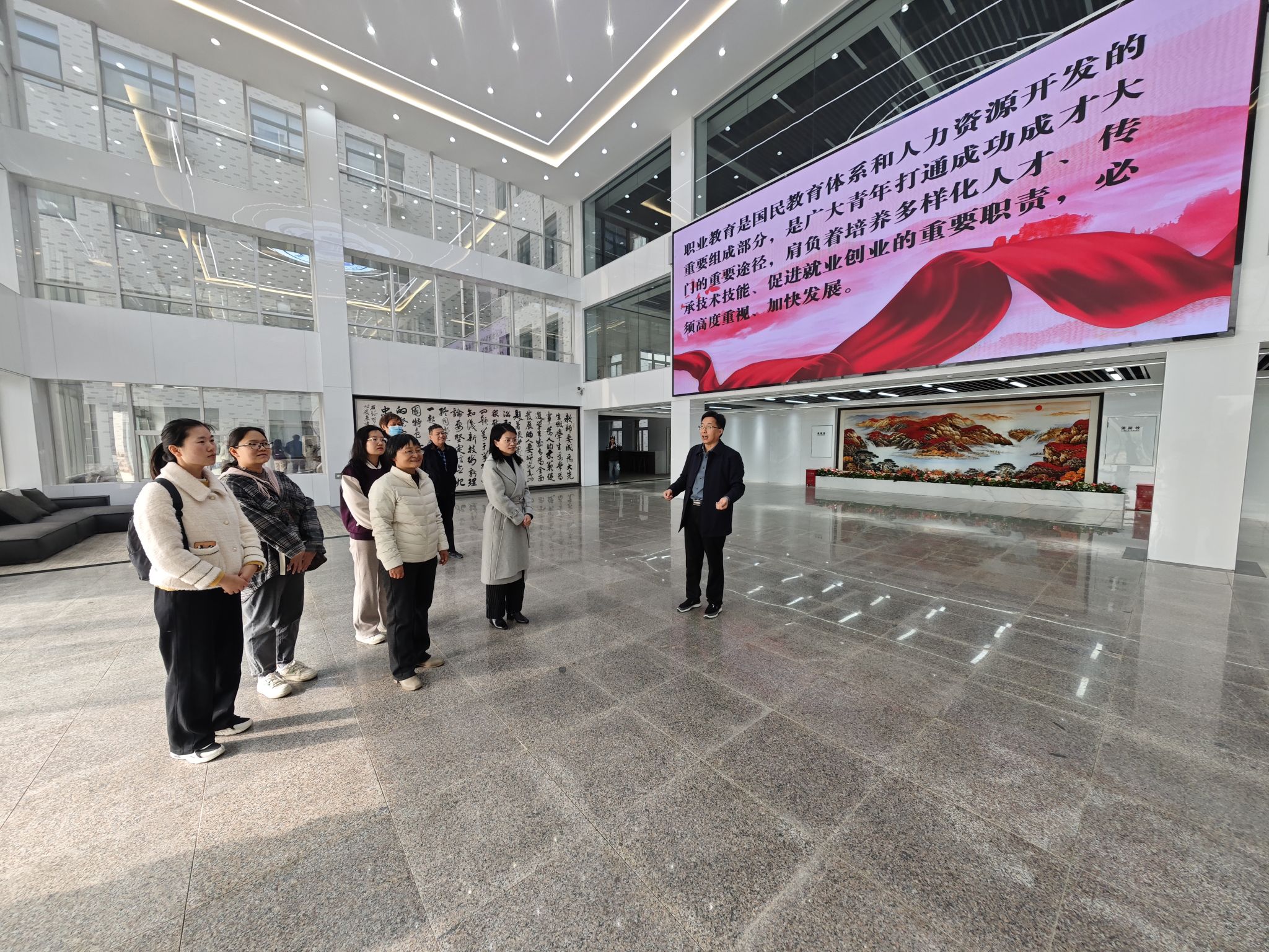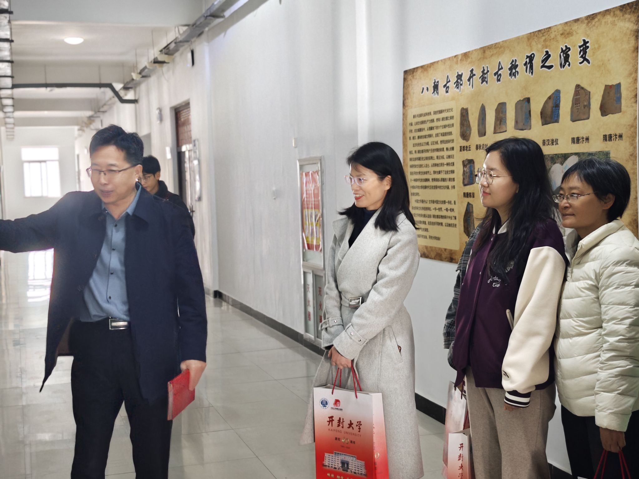 參觀代表與毛成利老師打卡開封大學行政樓大廳