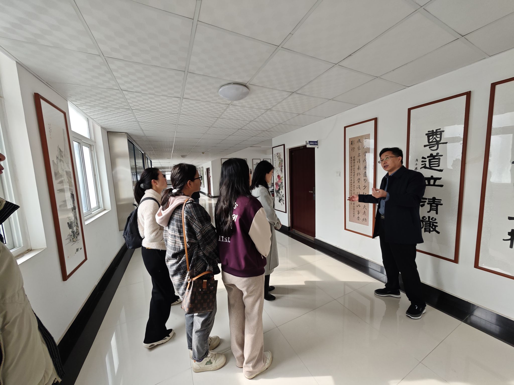 步入書畫協會文化走廊,濃郁的文化氣息撲面而來。走廊兩側懸掛著書畫協會成員精心創作的書畫作品,或筆走龍蛇,或娟秀靈動,或氣勢磅礴,或意境深遠,充分展現了開封大學學子深厚的文化底蘊和藝術修養。劉善花主任一行駐足欣賞,對同學們的藝術才華贊不絕口。