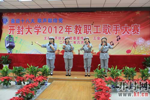 6月26日,開封大學在校國際教育學院多功能廳隆重舉行了“喜迎十八大 歌聲獻給黨”2012年教職工歌手大賽,全校近40位選手參加了比賽。記者 邵瀅 攝