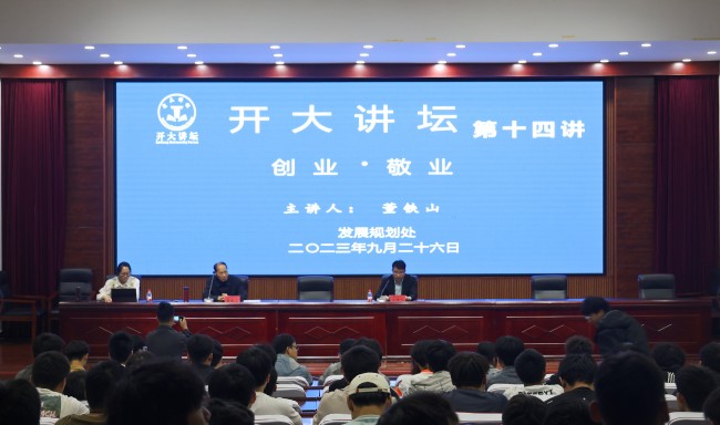 本站訊 9月26日下午,“開大講壇”系列報告第十四講在行政樓第一會議廳舉行。開封市威利流量儀表有限公司總經理、民營企業家董鐵山,應邀作了“創業 敬業”主題報告。機械與汽車工程學院、電子電氣工程學院、信息工程學院師生代表參加本次報告。報告由發展規劃處處長葉飛主持。