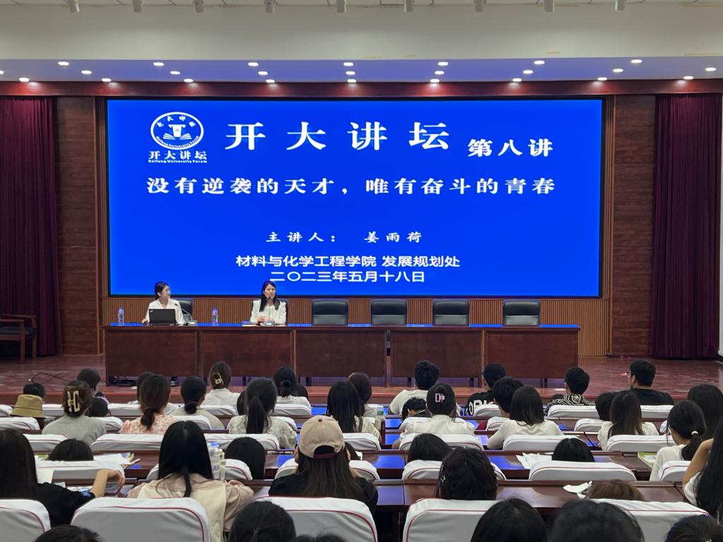 本站訊 5月18日下午,“開大講壇”系列報告第八講在行政樓第一會議廳舉行,材料與化學工程學院邀請世界技能大賽特別賽化學實驗室技術項目金牌獲得者姜雨荷老師做“沒有逆襲的天才 唯有奮斗的青春”主題報告。學院師生代表220余人參加了本次講座,講座由材料與化學工程學院副院長王麗主持。