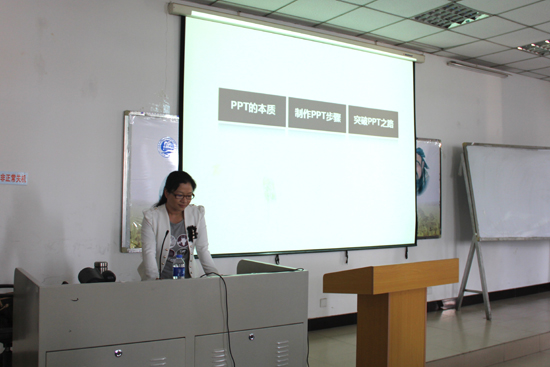 本次培訓由我校旅游學院段淑敏老師主講,旨在提高我校青年教師多媒體課件制作水平和課堂教學水平。培訓中,段淑敏老師從PPT的本質、PPT制作步驟、突破PPT之路三個方面詳細介紹了PPT課件的制作與軟件使用技巧,給在座的青年教師帶來了很多新的理念和啟示,大家都感到受益匪淺。
