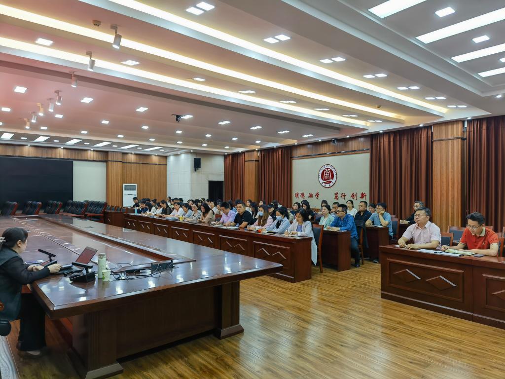 本站訊  5月8日下午,我校在行政樓四樓第二會議廳舉辦“深耕資源建設,賦能教學創新”專業教學資源庫建設專題報告,報告由教務處處長王茜主持,材料與化學工程學院副院長王明瑞主講,各專業學院副院長、教研室主任等參與國家級、省級、校級專業教學資源庫建設老師參加。