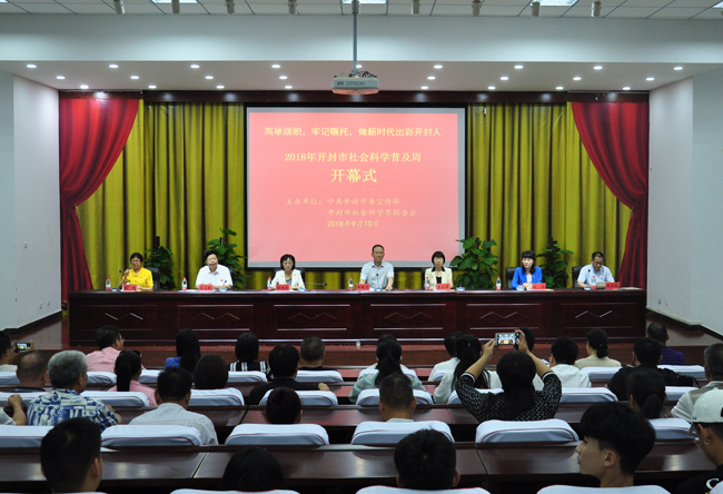 本站訊 9月10日上午,開封市社會科學界聯合會在我校行政樓一樓會議廳舉行了2018年度開封市社會科學普及周活動的開幕式。市委常委、宣傳部長王載飛,市人大常委會副主任朱麗萍,市政府副市長孫曉紅,市政協副主席趙潔,開封市社科聯主席張琳,市委宣傳部副部長封永元,我校校長宋志敏出席了此次開幕式,市相關部門領導,大專院校、市委黨校、市屬學會(協會、研究會),省、市社科普及基地的代表們和我校部分師生參加了此次開幕式。開幕式由市委宣傳部副部長封永元主持。
