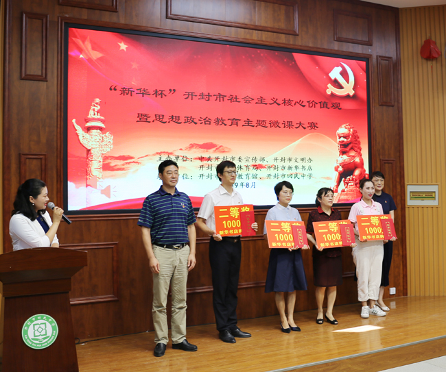 8月7日下午,由中共開封市委宣傳部、開封市文明辦、開封市教育體育局、開封市新華書店主辦,開封市電化教育館、開封市回民中學承辦的“新華杯”開封市社會主義核心價值觀暨思想政治教育主題微課大賽在本市回民中學報告廳成功舉行。我校人文學院青年教師孟曉輝在參加比賽的12人中脫穎而出,榮獲二等獎的好成績(總分排名第二),同時我校榮獲“優秀組織獎”榮譽稱號。