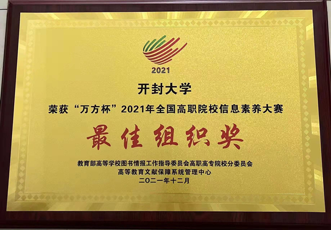 近日,教育部高等學校圖書情報工作指導委員會公布了2021年全國高職院校信息素養大賽結果,我校榮獲“最佳組織獎”。