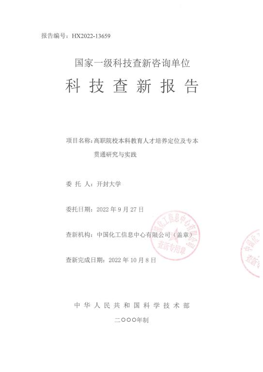 《高職院校本科教育人才培養定位及專本貫通研究與實踐》查新報告