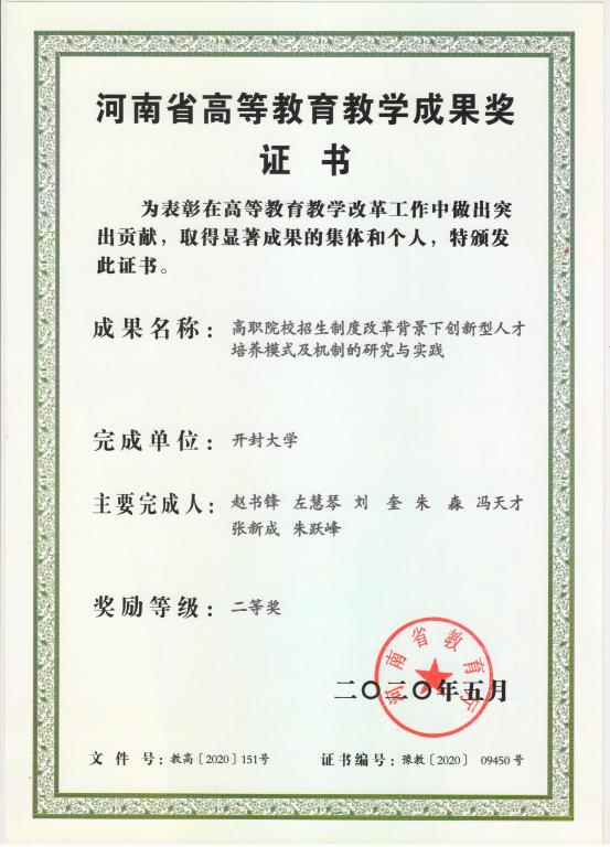 河南省高等教育教學(xué)成果獎二等獎