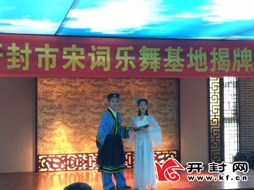 伴隨著古色古香的音樂和眾多的嘉賓們的掌聲,成芳、陳巖、趙瑾共同為開封宋詞樂舞研究會(huì)基地開封大學(xué)揭牌。