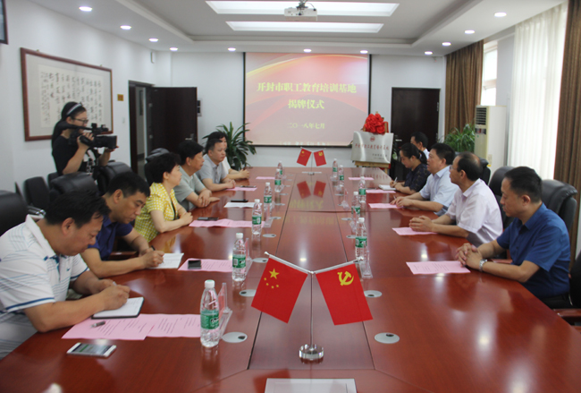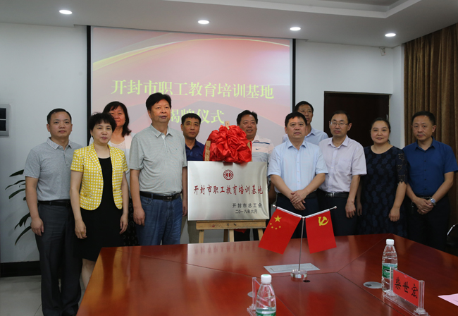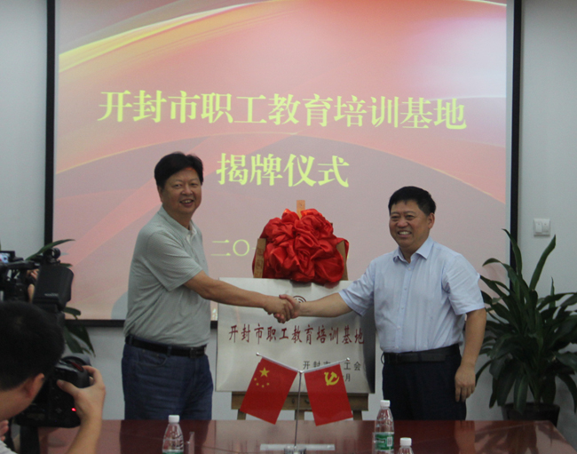 揭牌儀式上,開封市總工會黨組書記、常務(wù)副主席和寶杰和我校校長宋志敏共同為培訓(xùn)基地揭牌。